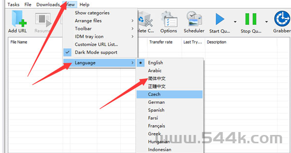 2、打开软件即可畅享“IDM俄罗斯大神版”,在软件主页上方选择view后点击language可选择中文切换汉语